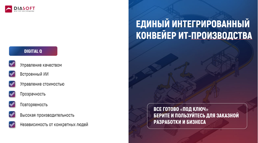 Центральной темой мероприятия стала экосистема Digital Q, предназначенная для промышленного производства программных продуктов, в которой low-code, микросервисная архитектура и искусственный интеллект (ИИ) формируют единый цифровой конвейер разработки.